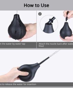 HOW TO FILL WITH WATER: Before use, detach the enema bulb from nozzle, squeeze air out, submerge the bulb into water, squeeze the bulb and suck water in. The smooth bulb interior surface makes the reusable enema douche easy to clean fully