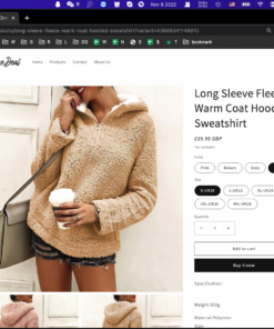 1*Long Sleeve Fleece Warm Coat Hooded Sweatshirt