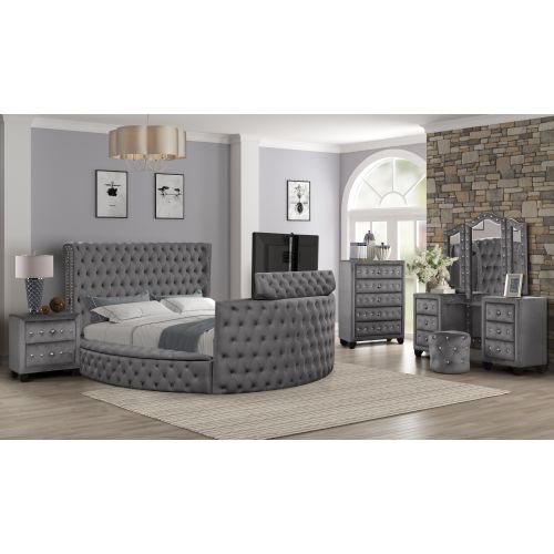 Maya Crystal Tufted King 5 Pc Vanity Bedroom Set Made with Wood in Gray