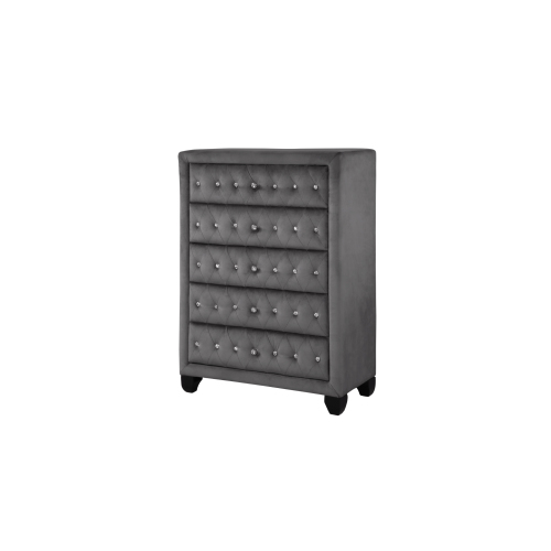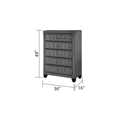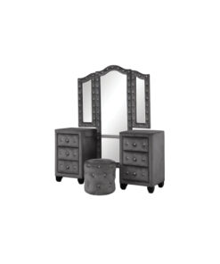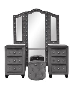 Be the first to review “Maya Crystal Tufted King 5 Pc Vanity Bedroom Set Made with Wood in Gray” Cancel reply