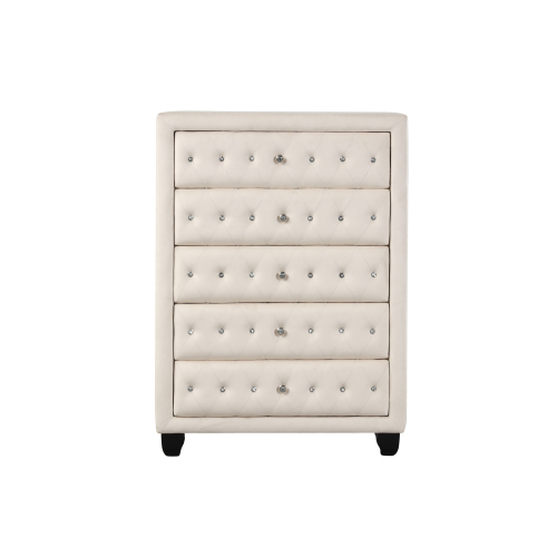 Maya Crystal Tufted Queen 5 Pc Vanity Bedroom Set Made with Wood in Cream