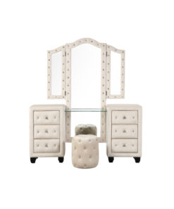 Be the first to review “Maya Crystal Tufted Queen 5 Pc Vanity Bedroom Set Made with Wood in Cream” Cancel reply