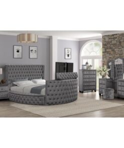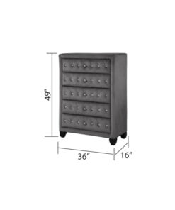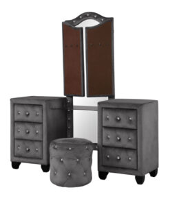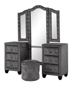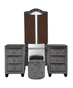 Be the first to review “Maya Crystal Tufted Queen 5 Pc Vanity Bedroom Set Made with Wood in Gray” Cancel reply