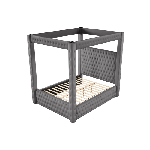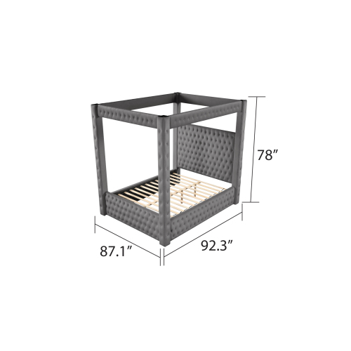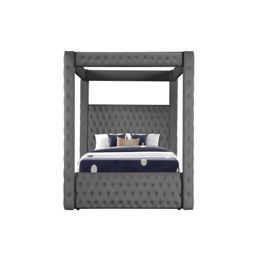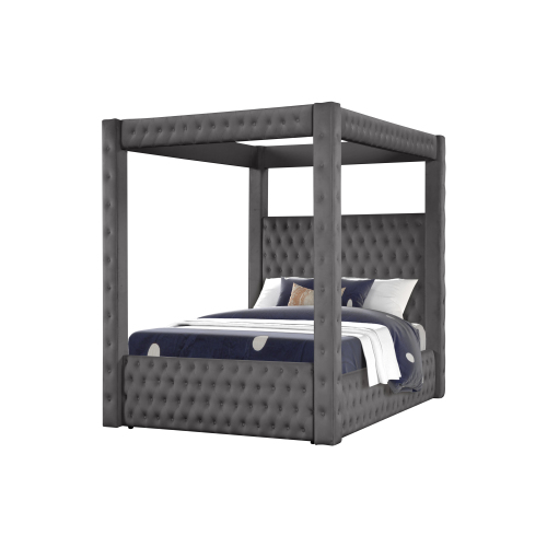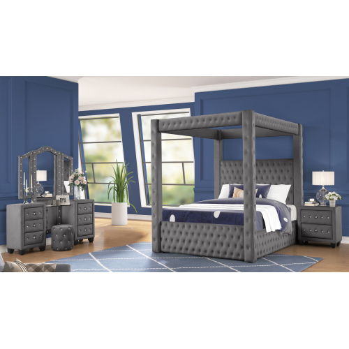 Monica luxurious Four-Poster King 4 Pc Vanity Bedroom Set Made with Wood in Gray