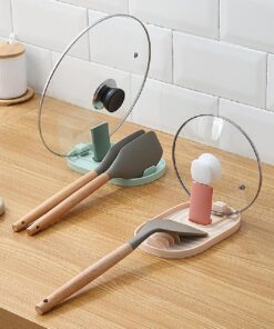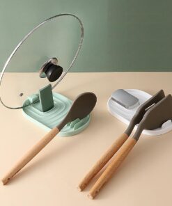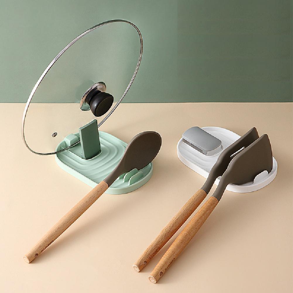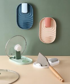 Pan Lid Holder and Spoon Rest ▶Our kitchen organizer made of sturdy plastic is not only convincing as a holder for your pot lid, it also provides a shelf for cooking spoons. A special kind of gadget. The use of cheerful colors makes it friendlier than similar items made of stainless steel.